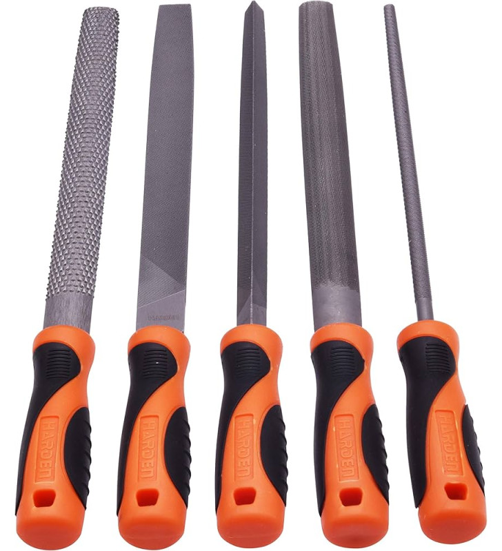 Lot de 4 limes à métaux : lime ronde à deuxième denture, lime demi-ronde à deuxième denture, lime triangulaire à deuxième denture, lime plate lisse.