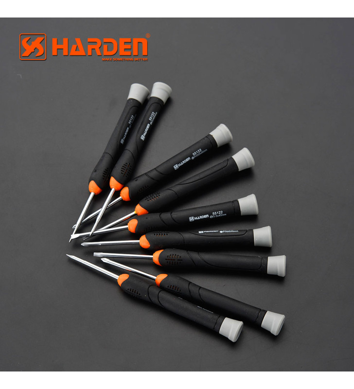 8 tournevis de précision : 3 plats 1.8-2.5-3. 2 cruciformes PH00-PH0. 3 torx T8- T9-T10
